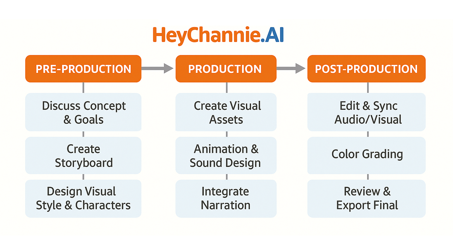 HeyChannie.AI mengerjakan dokumen, gambar, video dan film untuk promosi & kampanye Anda. End‑to‑end: konsep, naskah, produksi, hingga siap publish.